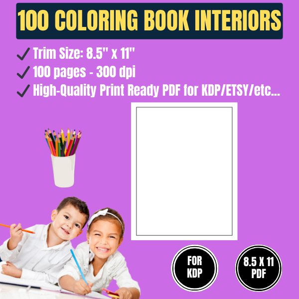 Coloring Book Interior For Amazon KDP - 100 pages in PDF format - 8.5 x 11 inches